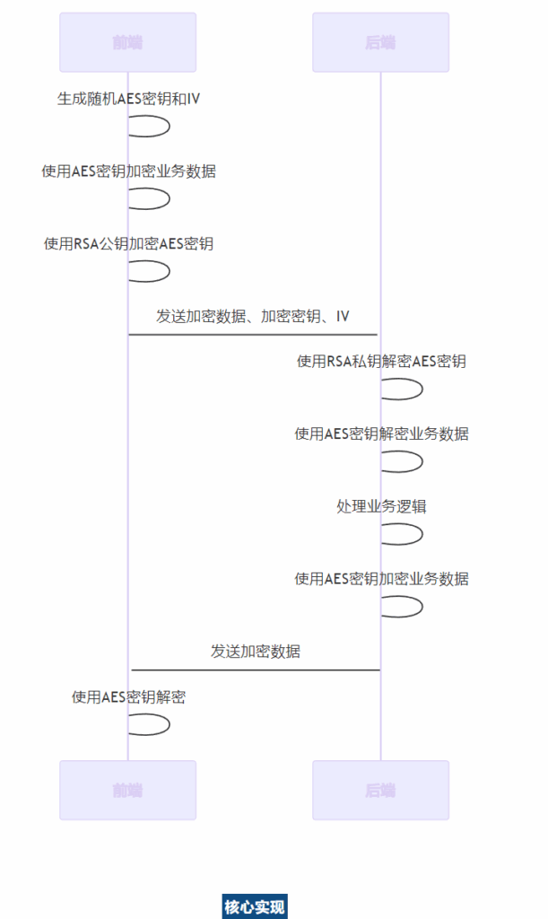 - • AES加密: 用于加密大量业务数据(对称加密,效率高)